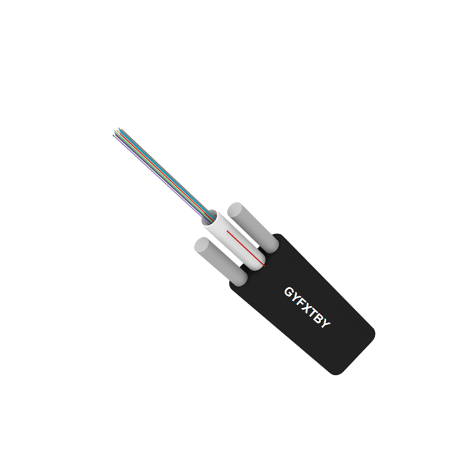 GYFXTBY is a non-metallic aerial fiber optic cable with a flat structure. It has 2 FRP that are on both sides of parallel as its strength member. It is constructed with central loose tube with multiple 250µm optical fibers and is filled with a water-resistant compound.It's specifically designed for overhead installation to transmit optical signals.