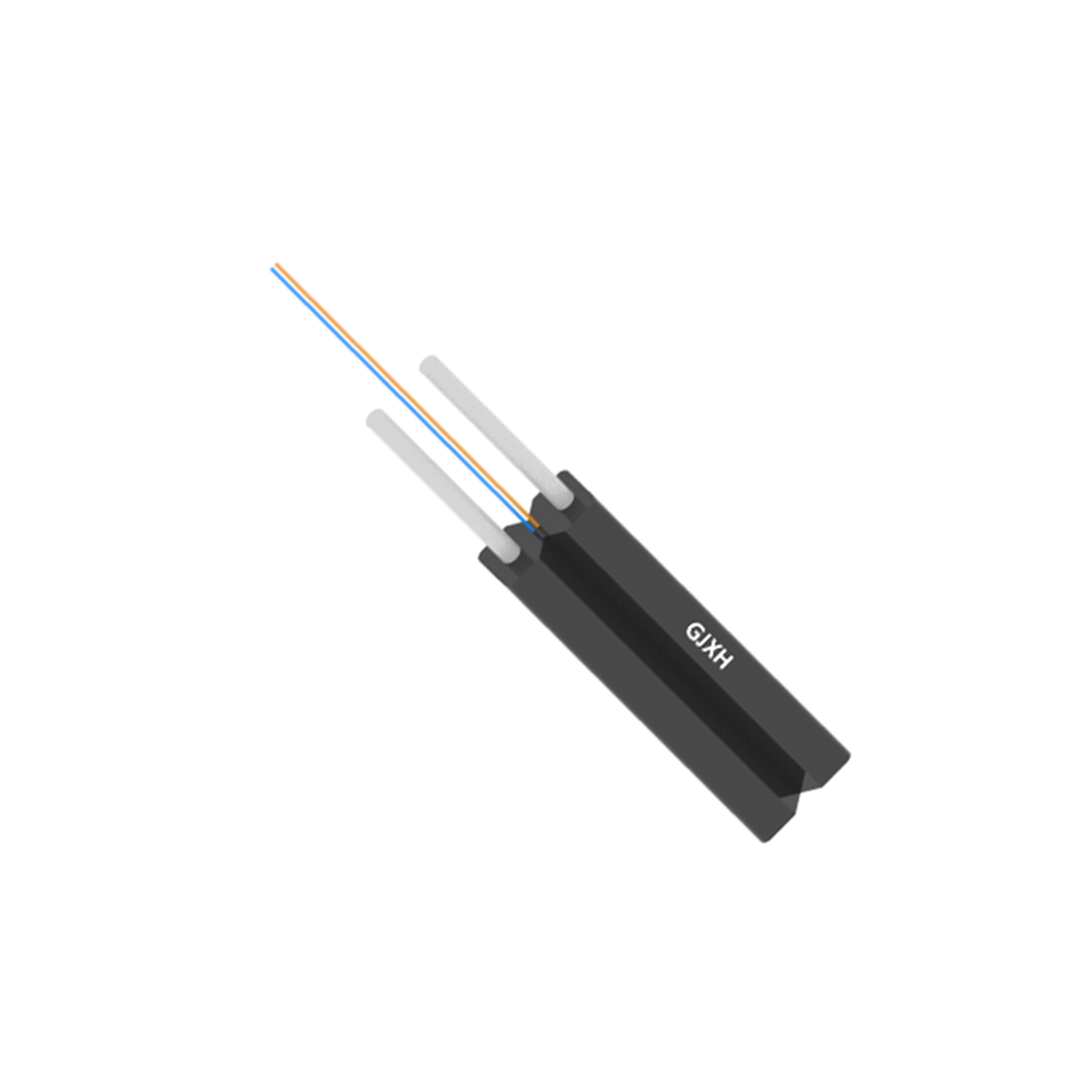 GJXH is a drop cable used for connecting between the main network and the end user. It is widely used in FTTH. This cable have simple structure. Two steel wire are placed in parallel making the drop cable have more tension. The fiber in the center is G657 helping the drop cable has good bending performance. Outer Jacket LSZH wrap the FRP and G657 fibers in a flat, bow-shaped shape.