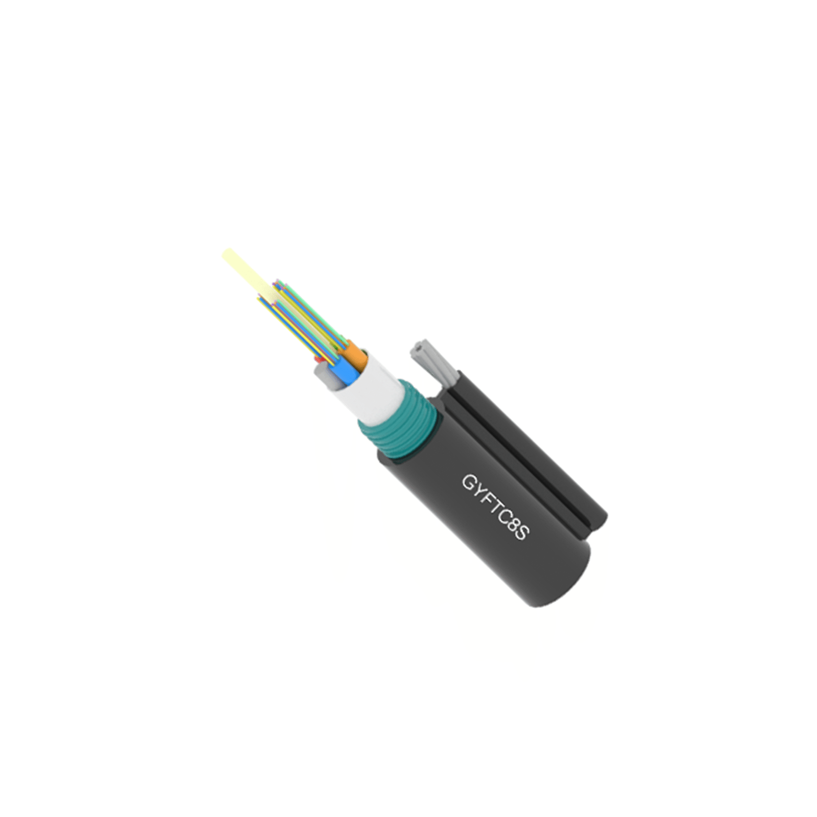 - Self-Supporting Structure: GYFTC8S cables are designed with a figure-eight shape and internal steel wires that provide excellent tensile strength, allowing the cable to be self-supporting without requiring additional support structures. This significantly simplifies installation and reduces costs.