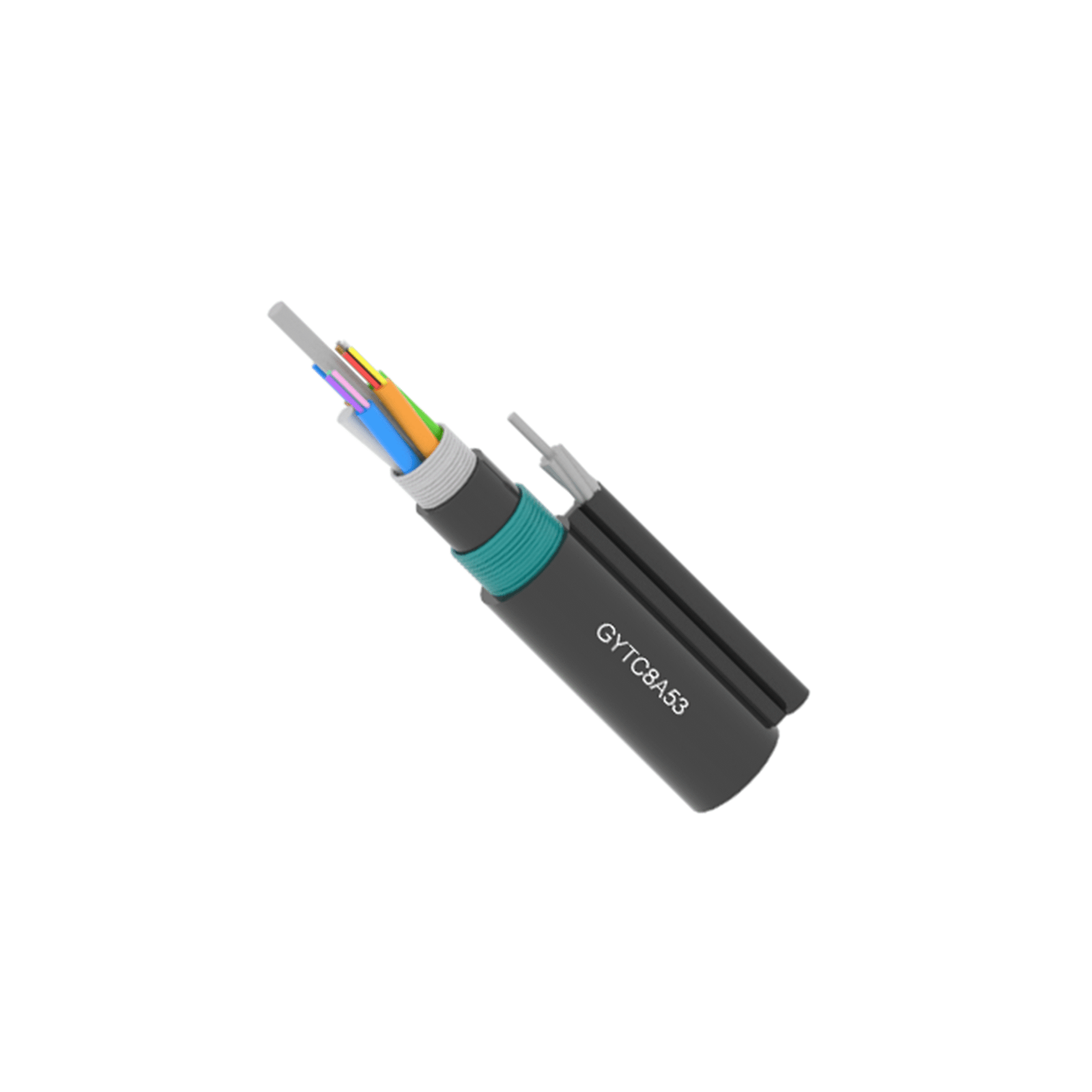 - Self-Supporting Structure: GYTC8A53 cables are designed with a figure-eight shape and internal steel wires that provide excellent tensile strength, allowing the cable to be self-supporting without requiring additional support structures. This significantly simplifies installation and reduces costs.