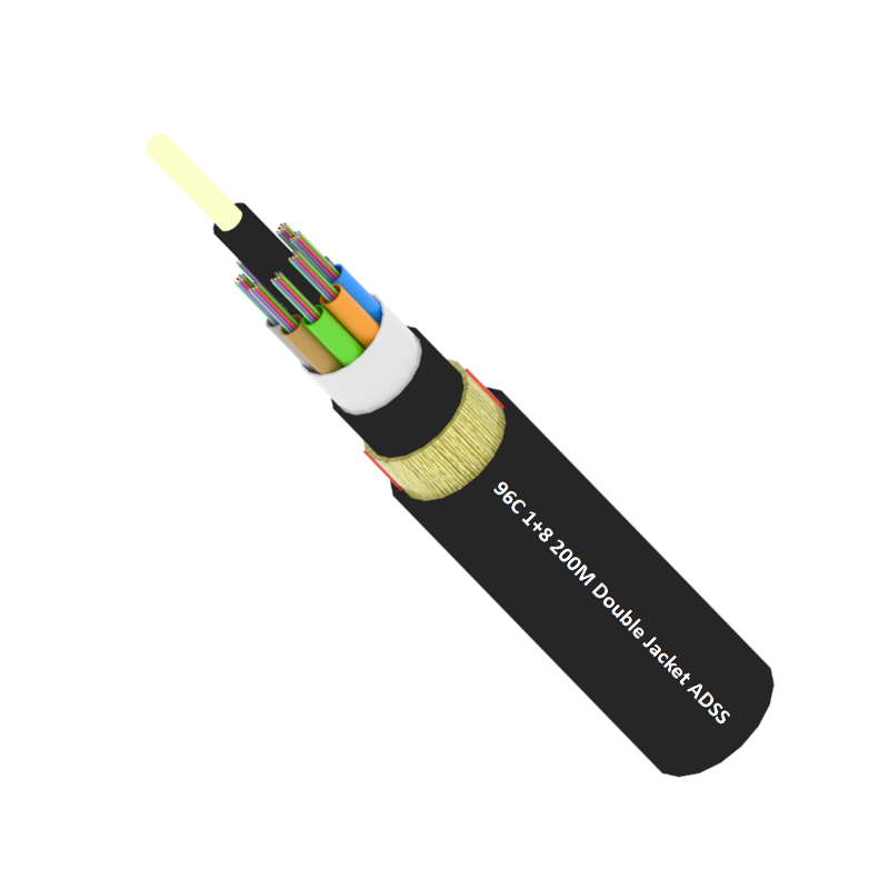 The 96 Core Double Jacket Aerial ADSS Fiber Optic Cable is designed for aerial deployment with a 200m span. Featuring a double jacket construction, it offers enhanced protection against mechanical stress, environmental hazards, and UV exposure. The ADSS (Aerial Drop Self-Supporting) design allows for easy installation without the need for support wires. With 96 fibers, this cable supports high-capacity data transmission for backhaul, FTTH, and telecom network applications, ensuring low attenuation and high reliability over long distances. It is ideal for long-span aerial fiber optic networks.