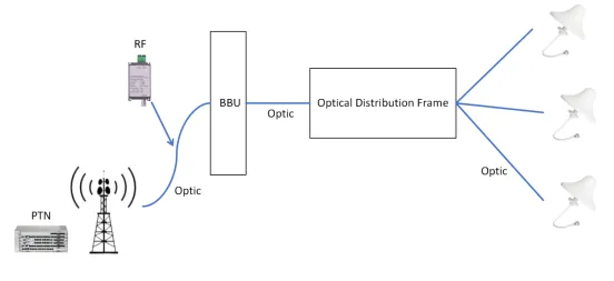 The Base Station does not have PTN equipment. If this Base Station needs to carry out business, the wireless signal of this Base Station needs to be collected and processed by the BBU equipment, converted into an optical signal and sent to the Base Station installed with the PTN equipment, so that the signal can be transmitted thousands of miles away. Therefore, a Fiber Optic Cable is required between the BBU and PTN, which is specially used for connecting the BBU and PTN and transmitting wireless signals. Then the Base Station without PTN equipment is connected to the Base Station with PTN equipment installed nearest to the Base Station through Fiber Optic Cable. This Base Station is called Remote Communication Base Station System, and transmits the received wireless signal to the PTN of another Base Station through optical fiber.